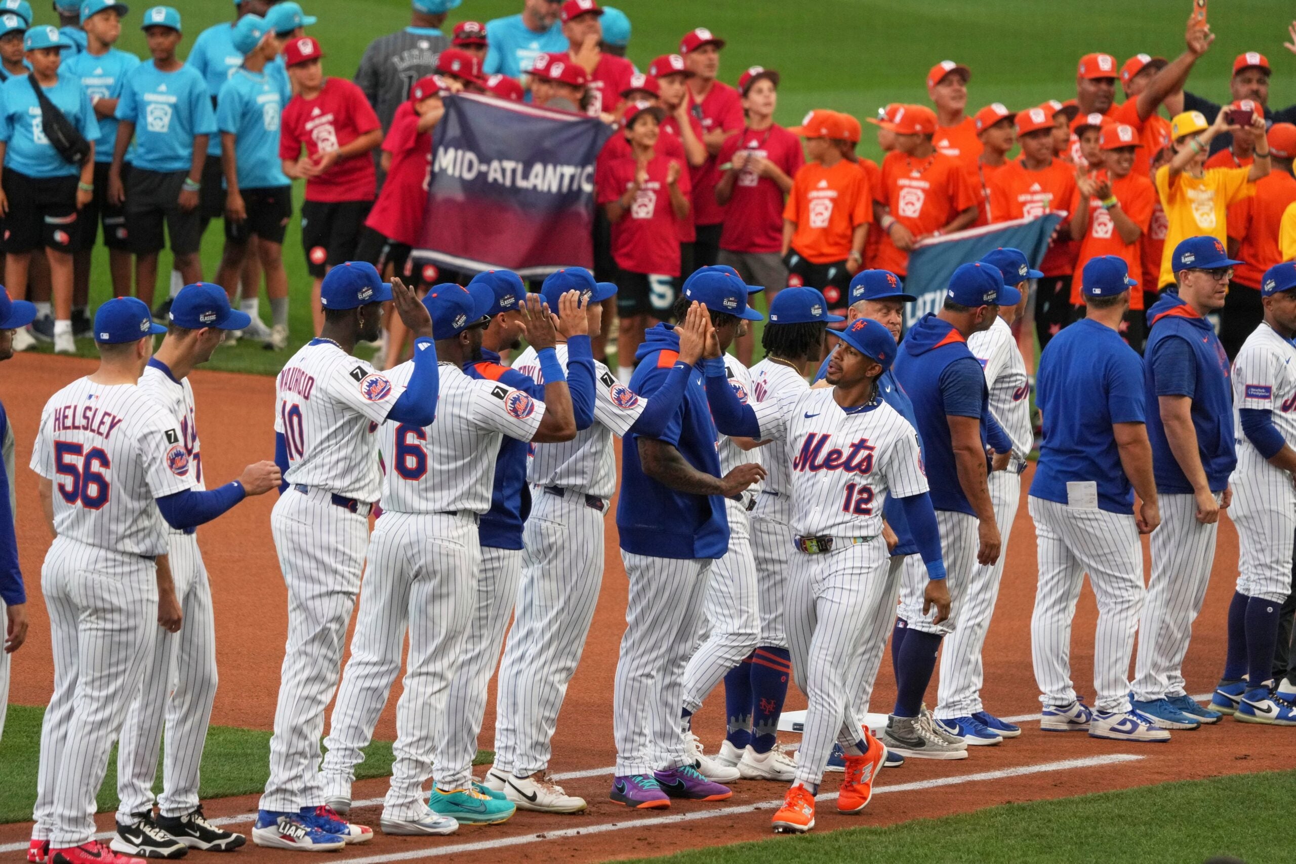 The Mets shared the field in Williamsport, Pa., with young ballplayers in August before beating the Mariners in the Little League Classic. – Gene J. Puskar