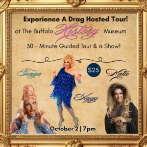 This immersive experience reimagines the role of a museum docent: instead of a traditional tour, guests are treated to performances, storytelling, and sassy commentary that bring Buffalo’s past to life in unexpected ways. From hidden gems in the archives to iconic moments in local culture, Drag Docent proves that history isn’t just dates and artifacts—it’s fabulous, diverse, and alive.