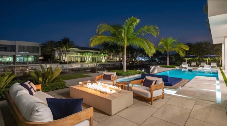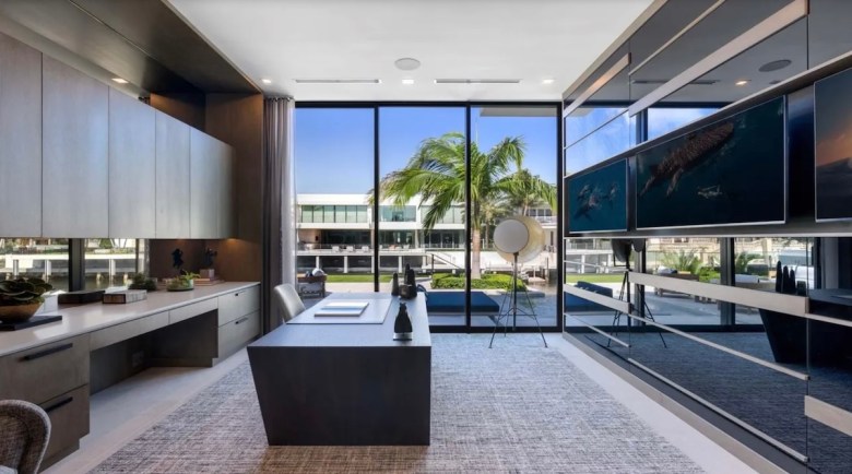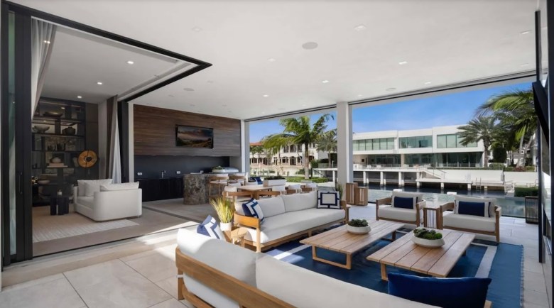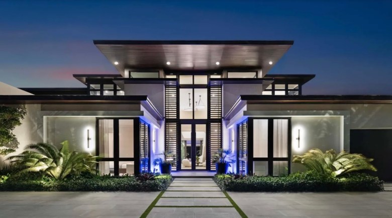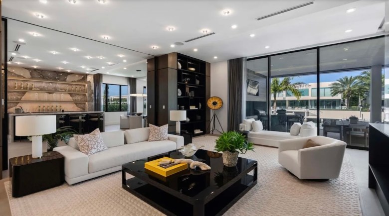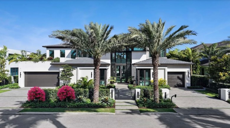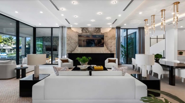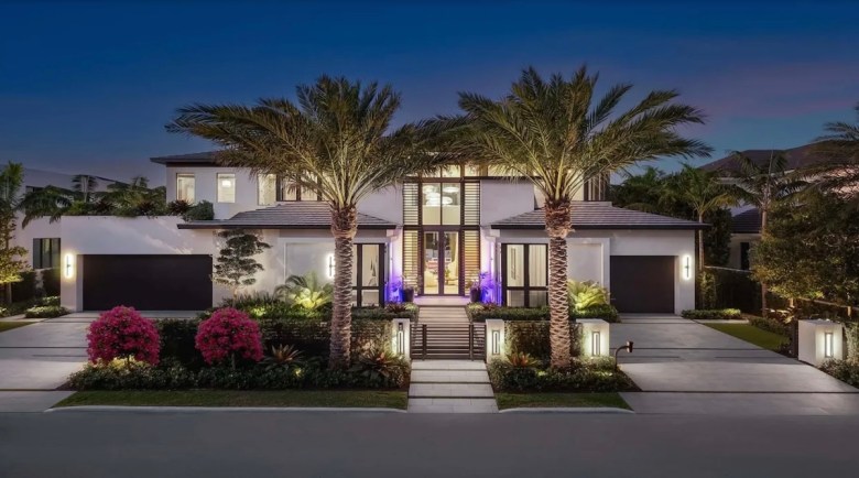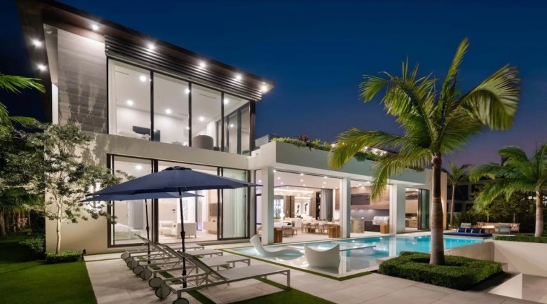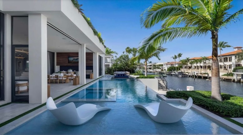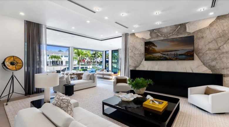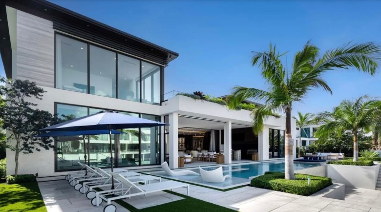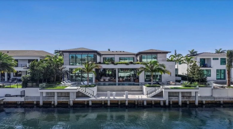 A south Florida mansion with direct water access, luxury amenities and — at least temporarily — a couple of celebrity neighbors has just hit the market.Â