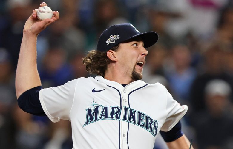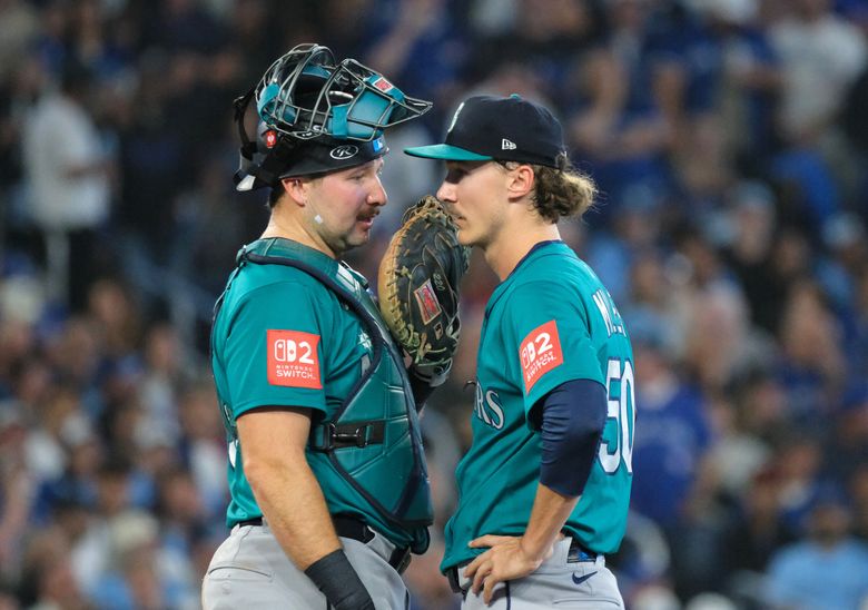 He had already lost a 12-pitch battle, walking Nathaniel Lukes. His only out came on Vlad Guerrero Jr.’s 107-mph line drive to Julio Rodríguez in center field. When he walked Addison Barger on five pitches, manager Dan Wilson was starting to consider his options in the bullpen, while the Blue Jays were one swing away from delivering a roundhouse punch in the first inning.