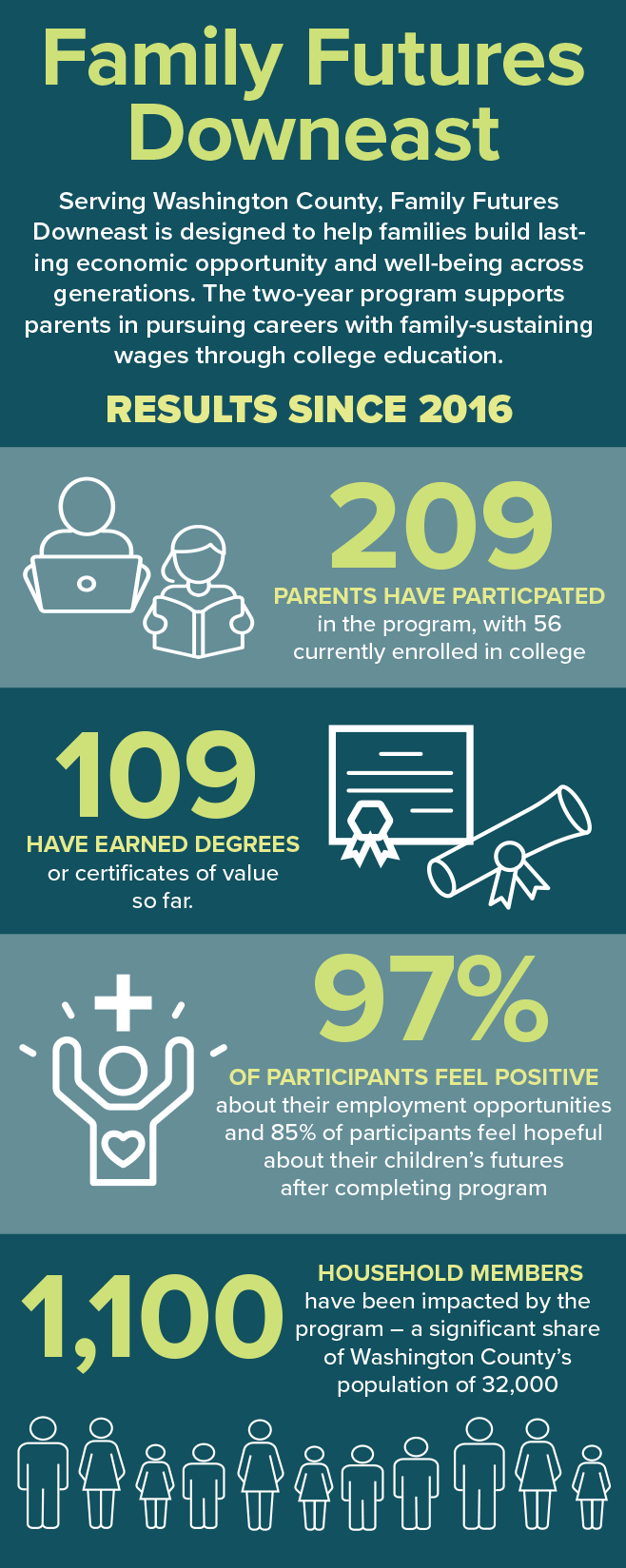 Family Futures Downeast Executive Director Marsha Sloan. “We’re not just reducing the risk that kids will grow up in poverty. We’re helping parents imagine a career pathway and a future for their families.”