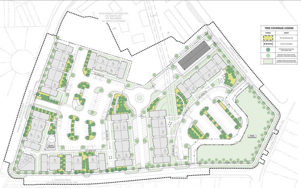 The total cost of the project is approximately $90 million, financed through a complicated amalgamation of tax credits, loans, and affordable housing bond funds. DHA selected Durham Community Partners to develop the 19.8-acre project. According to a city council memo, Durham Community Partners, also known as Fayette Place JV, LLC, includes DHA’s development arm Development Ventures Incorporated (DVI), Harmony Housing Affordable Development, Gilbane Development Company, and F7 International Development.