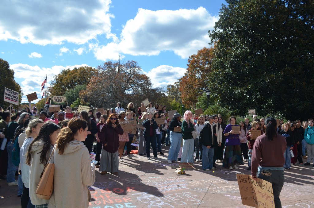 “We’re not here [protesting] because we hate Meredith or don’t like change,” says Marina Ostrowski, a social work and psychology double major. “We love Meredith, and change can be really good, but the change that we’ve seen has not really been transparent or been in the best interest of our students.”
