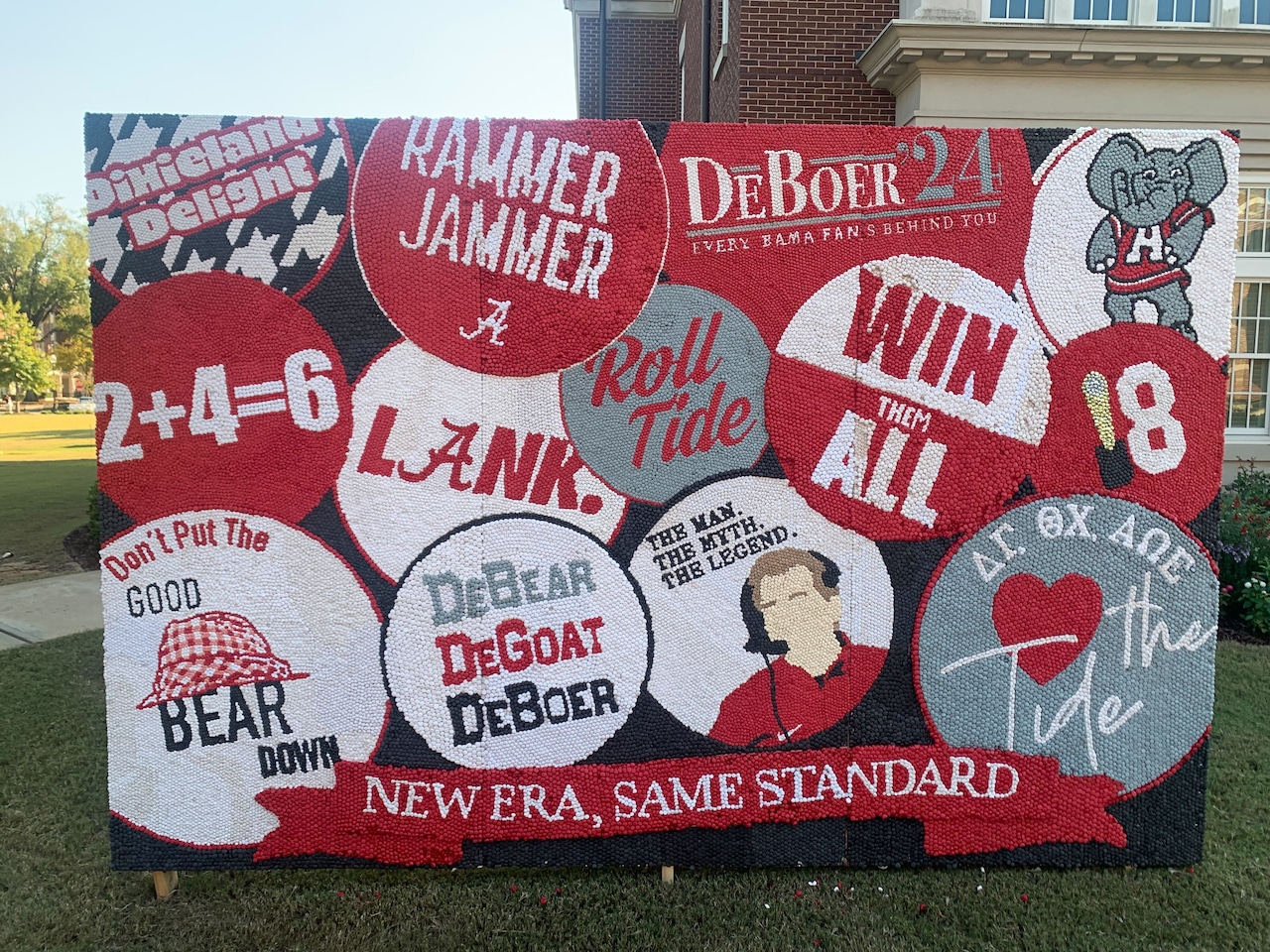 Ahead of the annual pep rally, bonfire and homecoming queen announcement, fans and alumni will stroll along the sidewalks outside the UA Panhellenic sorority houses Friday afternoon to catch a glimpse at the work, a day before the Tide kick off against Oklahoma in Bryant-Denny Stadium.