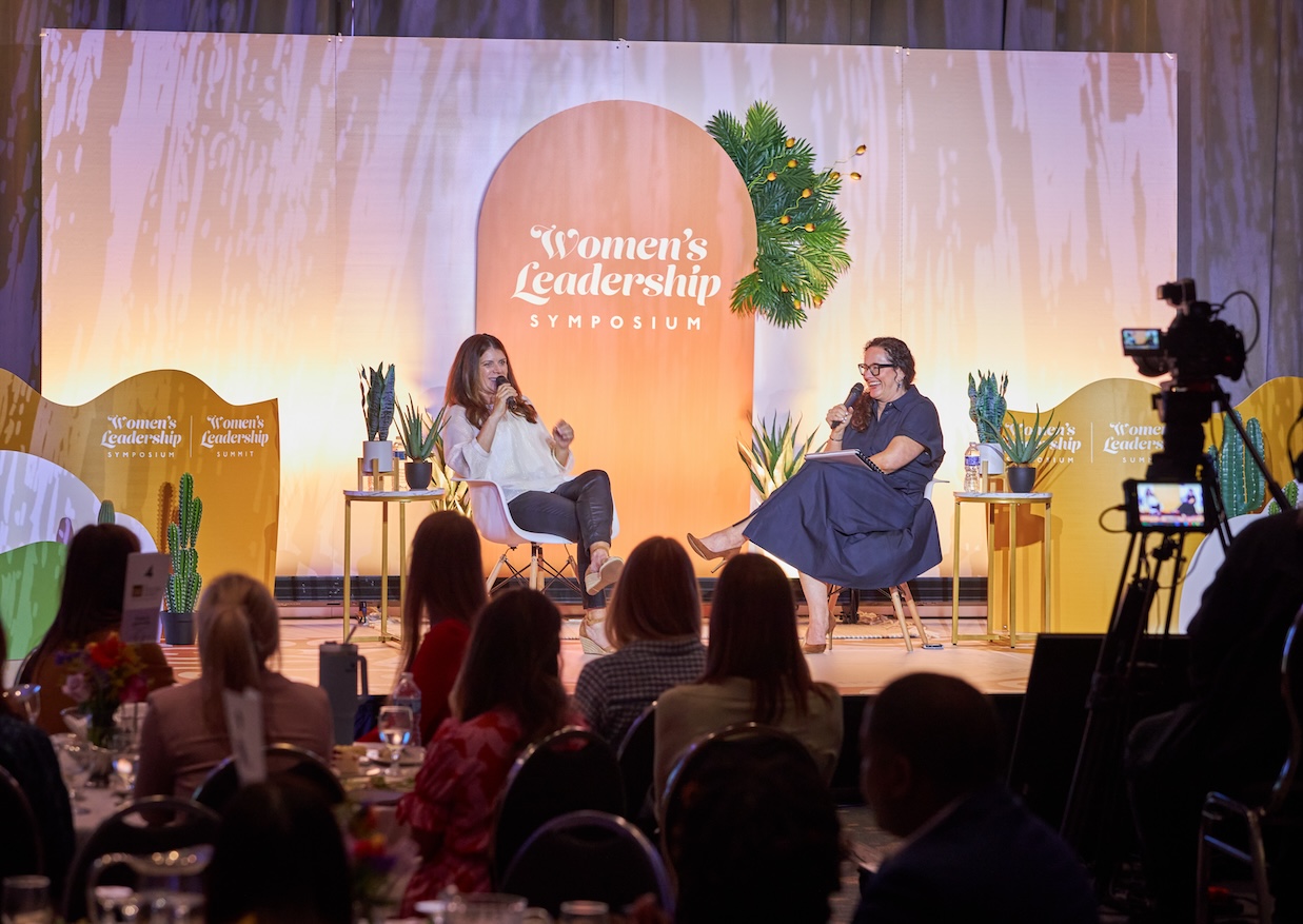 Richardson on stage with SWLS 2023 keynote speaker Mia Hamm.