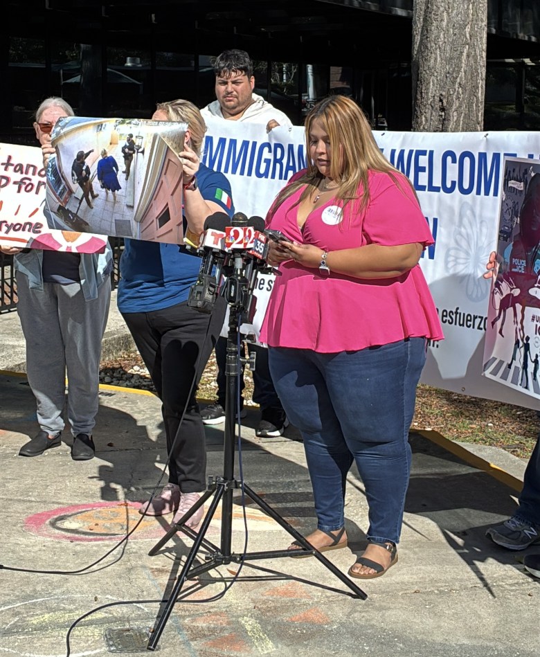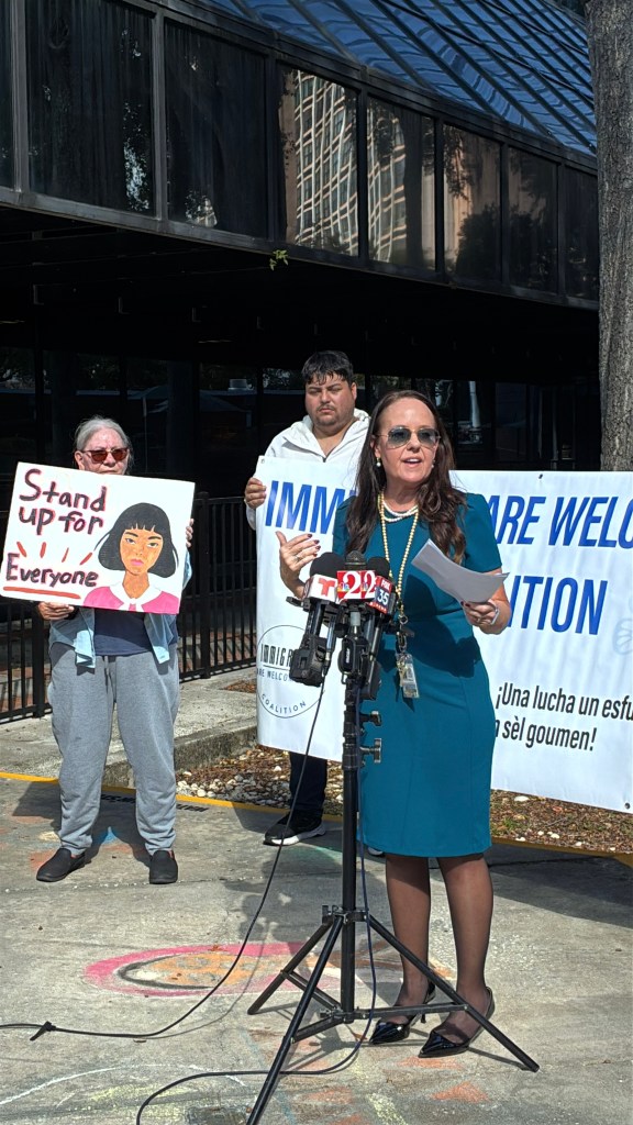 “We are seeing people aggressively being taken by masked agents in our communities. Unmarked uniforms, arrests without warrants,” she told the county board of commissioners and the press. “Now we have the [Florida] Fish and Wildlife and, incredibly, even the [Florida] Department of Finance agents in our streets, at our doors, working for ICE,” she added.