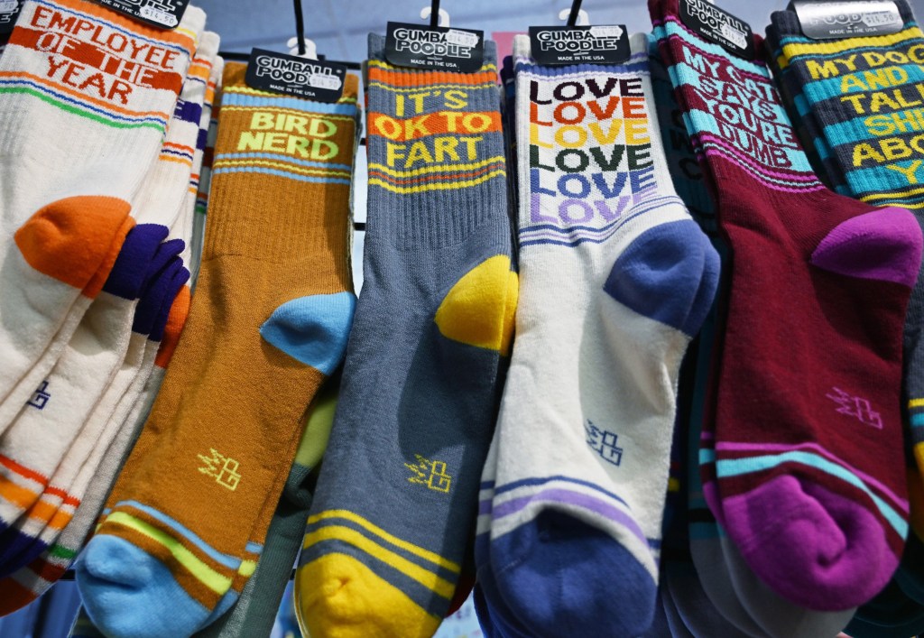 As for bestsellers, McKeagney turned to a pair that proudly proclaims “It’s OK To Fart.” They can be found right near ones that say “My Cat Says You’re Dumb.”