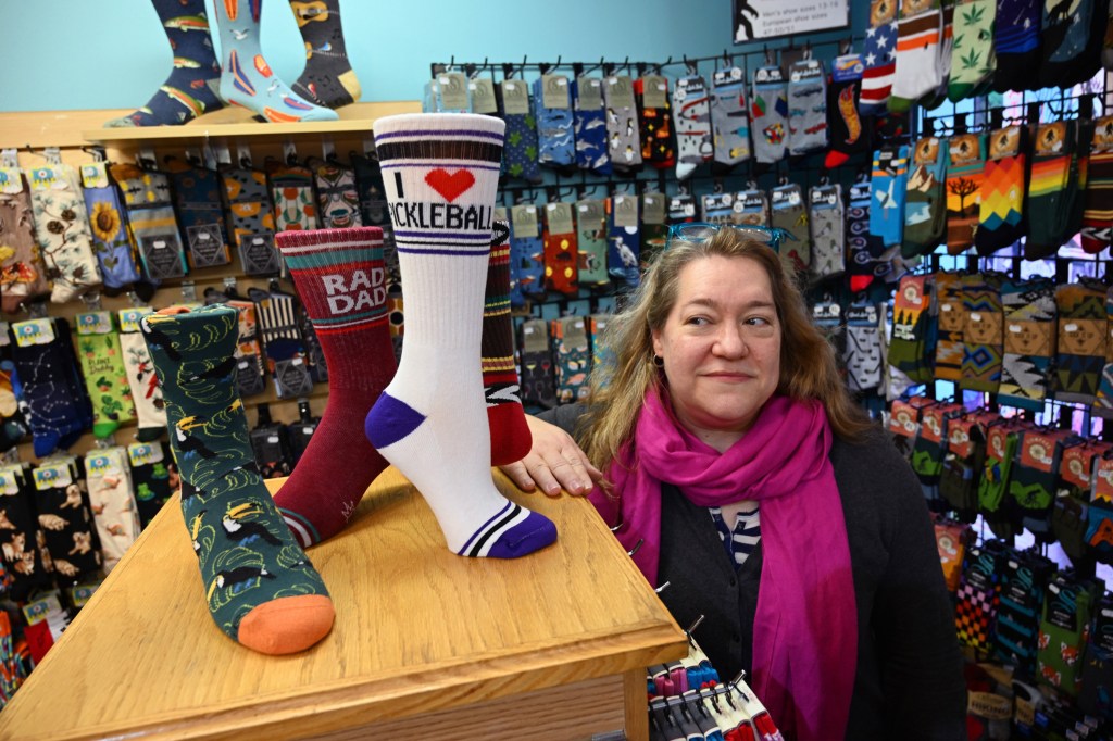 McKeagney, 53, who bought the store from original owner Lori Dorr last year, has worked at The Sock Shack since 2017. She credits her staff of six “enthusiastic, fun and smart” employees with much of the shop’s success. But it’s seeing the sheer volume of socks and colors that brings people in from the street.