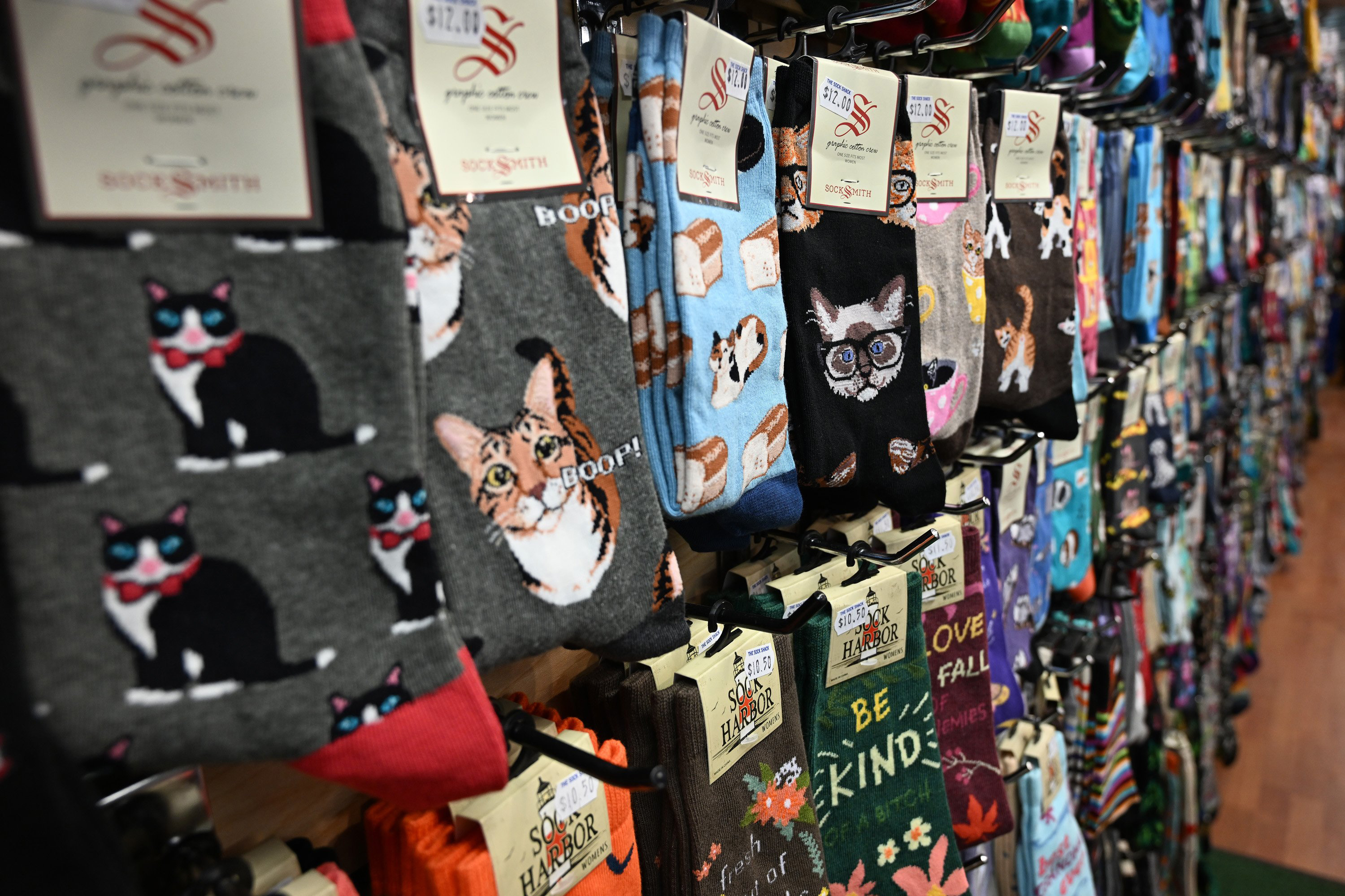 Socks on display at The Sock Shack on Dec. 10, 2025. (Shawn Patrick Ouellette/Staff Photographer)