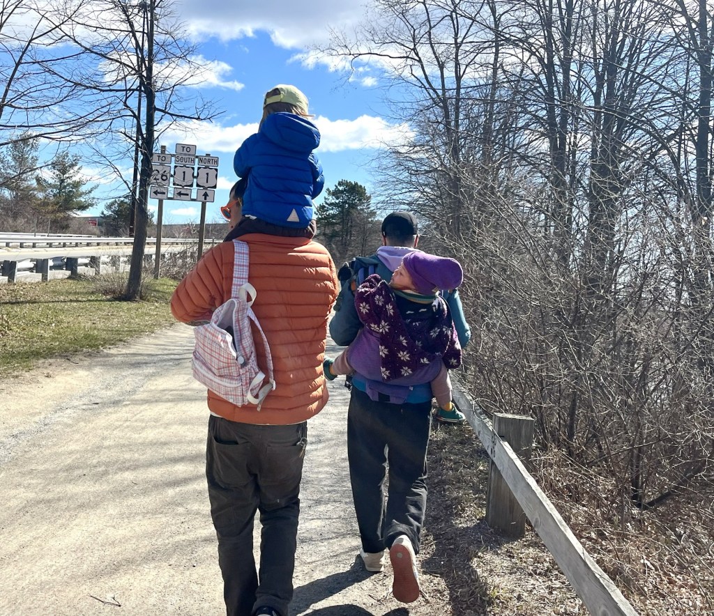 Luke Emerdello and Justin Pascone, who both live in Portland, took their children on Saturday’s hike.