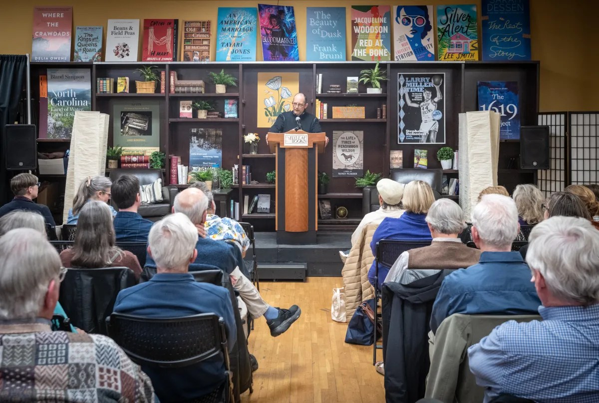 When Ehrman finished that line—the last of his career in Chapel Hill—he peeled open his sport coat and stuffed his notes inside. He waved at the crowd, thunderous in applause, in bashful thanks before staring back down at the lectern. He took a gulp, then looked back up, smiled, pointed to his heart, and made an X with his hands, as if to say “enough.”