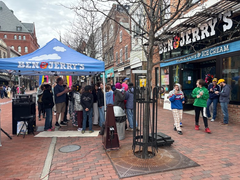 Cohen and a group of volunteers handed out flyers and stickers and sold shirts that read, “Yo Magnum, Free Ben & Jerry’s.” The hope was people would bring those items over to Church Street and spread the message to the crowd waiting in line for a free cone.