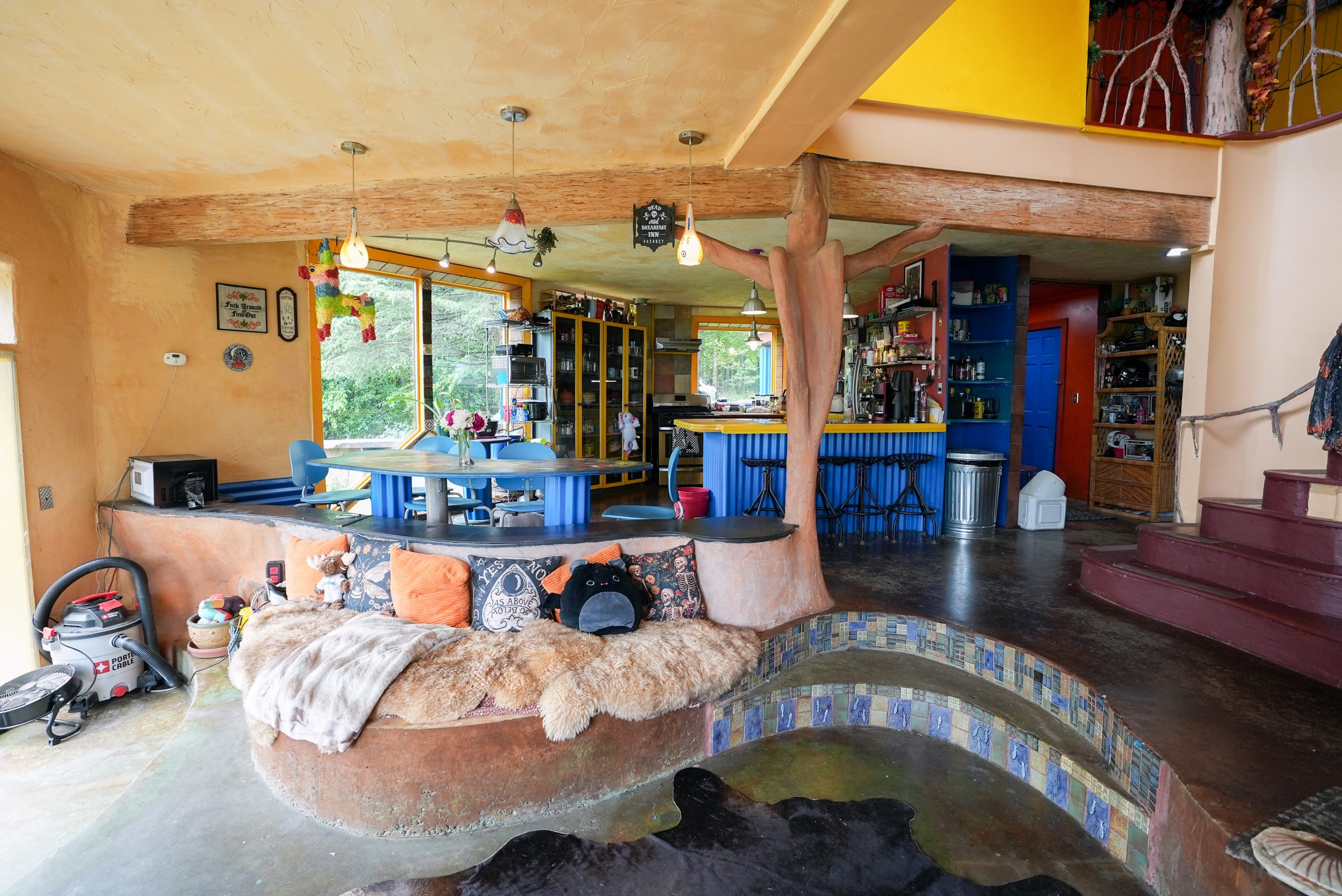 Not all of the heretofore hideousness ended up in a dumpster. The monkey-themed kitchen cabinets were repurposed into hallway mirrors. And the dead trees in the living room were reincorporated into what Brooklyn described as a “fairy forest house,” complete with a hobbit-sized hideaway under the stairs for the kids.