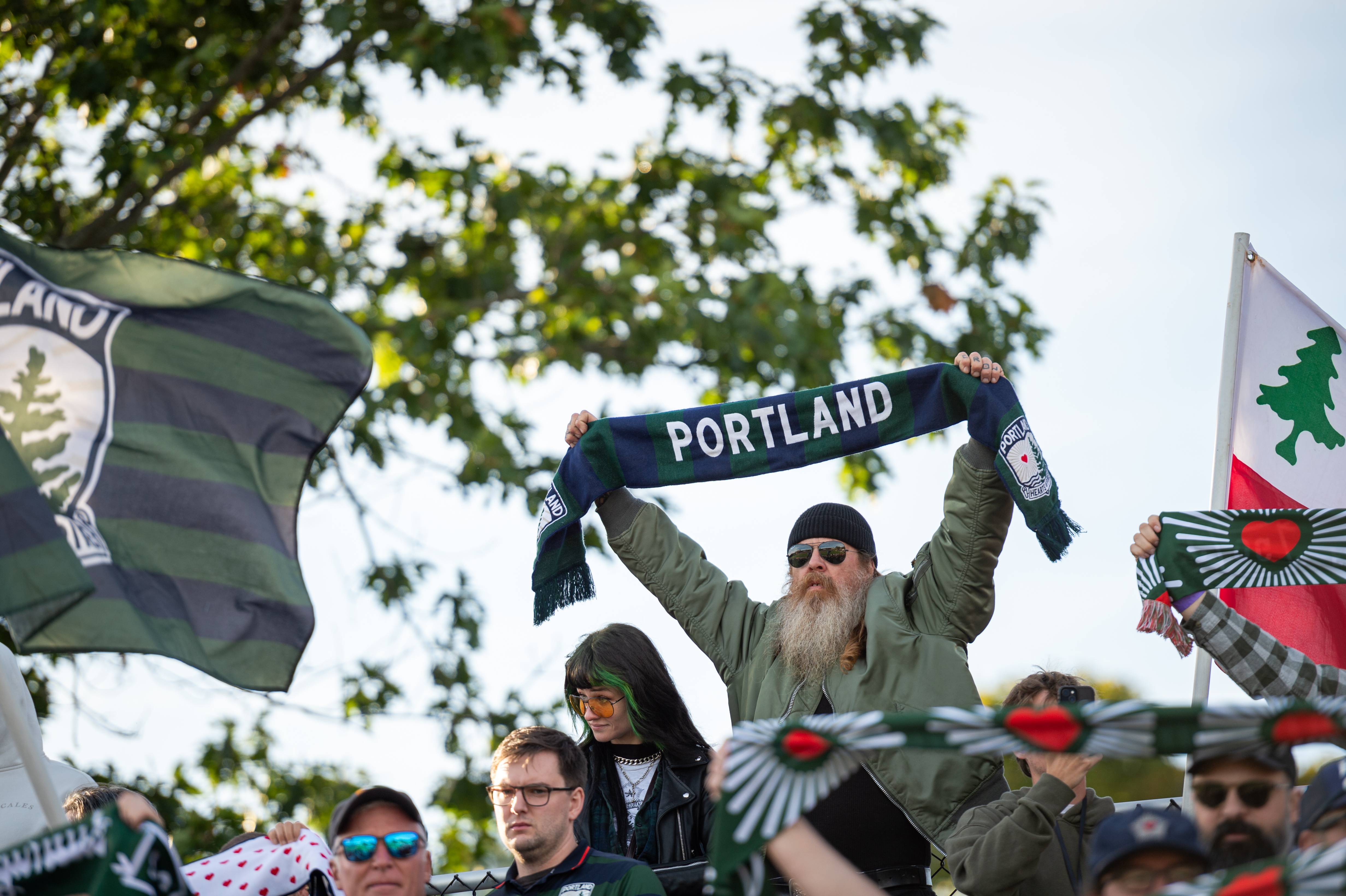 Hearts of Pine fans raise their scarves during Portland’s regular-season finale on Oct. 25. (Libby Kamrowski Kenny/Staff Photographer)