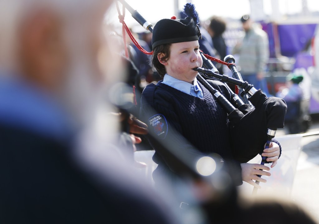 He and his wife, Kristin Dobbins, 53, came to Portland for the weekend from South Thomaston for the St. Patrick’s Day festivities. On Saturday, they joined crowds in the Old Port for an on-theme pub crawl. They were sure to get up and find a viewing spot for Sunday’s parade, despite staying out “way too late.”