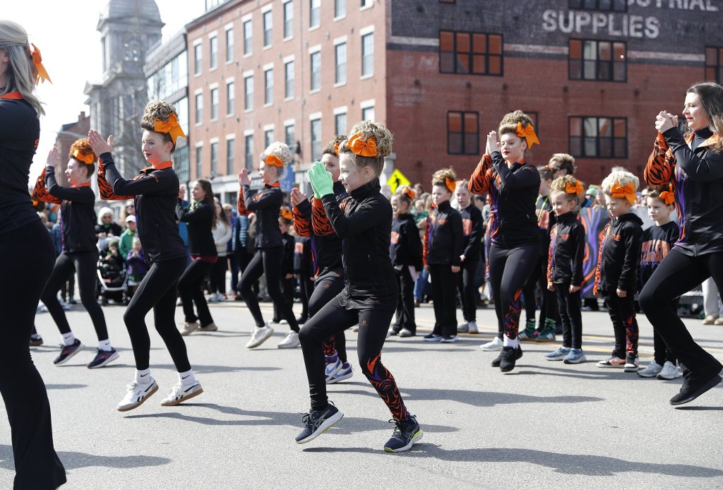In this year’s spectacle, the Claddagh Mhor Pipe Band walked down the street in kilts blasting bagpipes and drums. Irish American Club members waved flags of the counties of Ireland. The Maine Maritime Academy’s midshipmen regiment marched and played their tunes, followed by Dunlap Highland Band and multiple tractor trailers inching along the route representing the International Brotherhood of Teamsters.