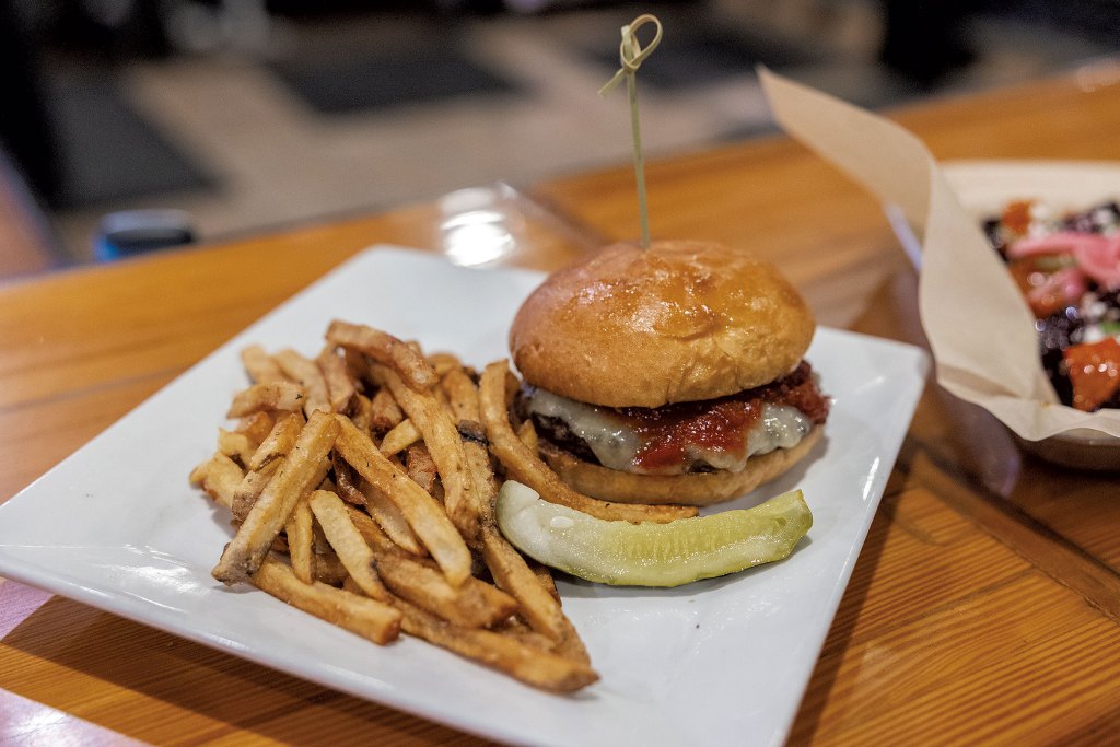 I’ll go back for a beer ($7.50 for draft pours) and Vermont poutine ($14), which features hand-cut fries smothered in rich gravy. At Riley’s recommendation, I’ll be sure to try the spiced-up Sweet Heat Beets ($11) topped with goat cheese and Mike’s Hot Honey. But it’ll be really hard not to get the burger, with its aioli-tomato jam duo, tender Wagyu and melty Cabot cheddar on a grilled brioche bun.