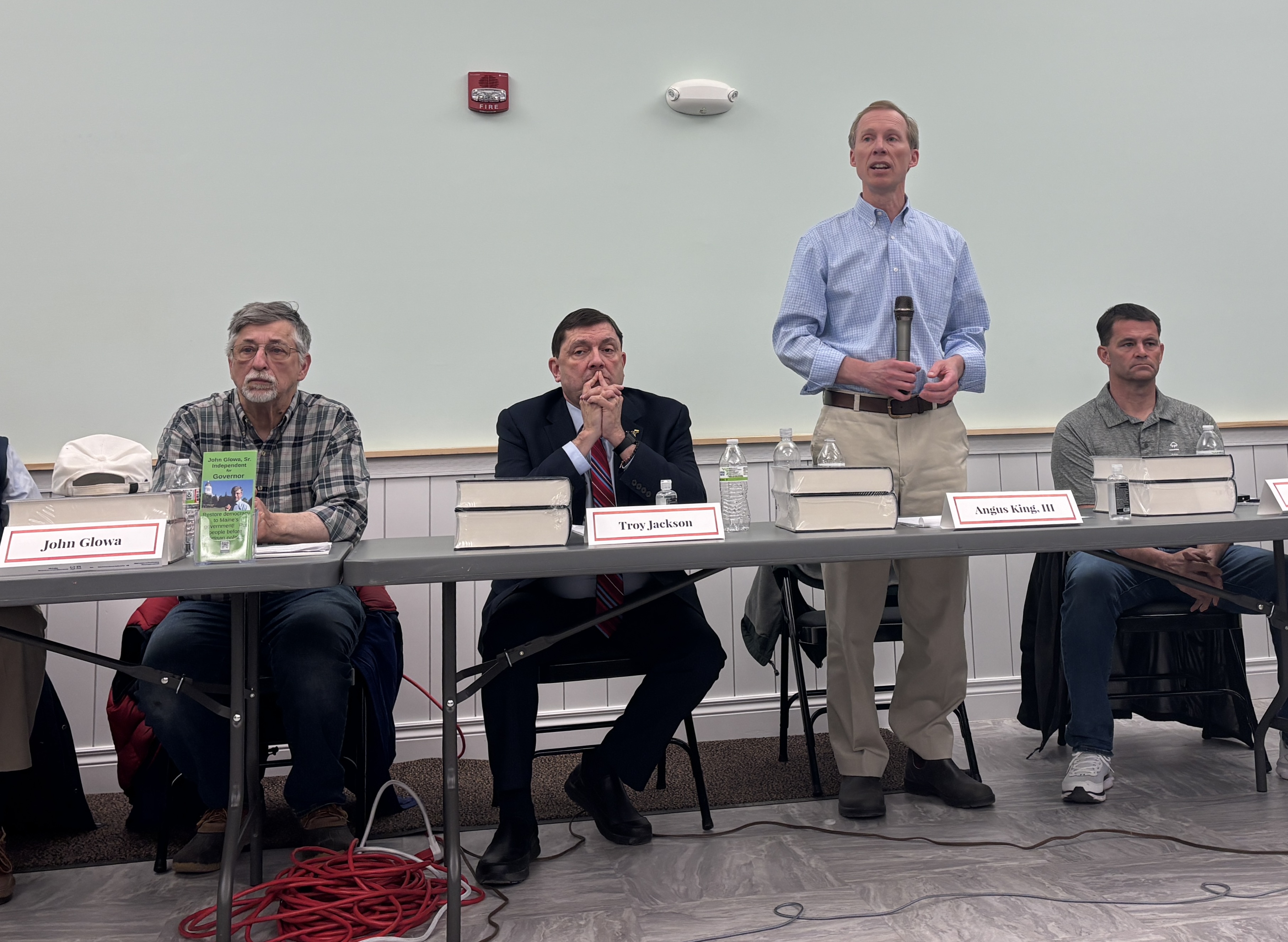 Democrat Angus King III, a renewable energy entrepreneur and the son of U.S. Sen. Angus King, and independents John Glowa, a former Department of Environmental Protection official, and Derek Levasseur, a long-shot candidate who is a small-business owner from central Maine, all hedged on their answers.
