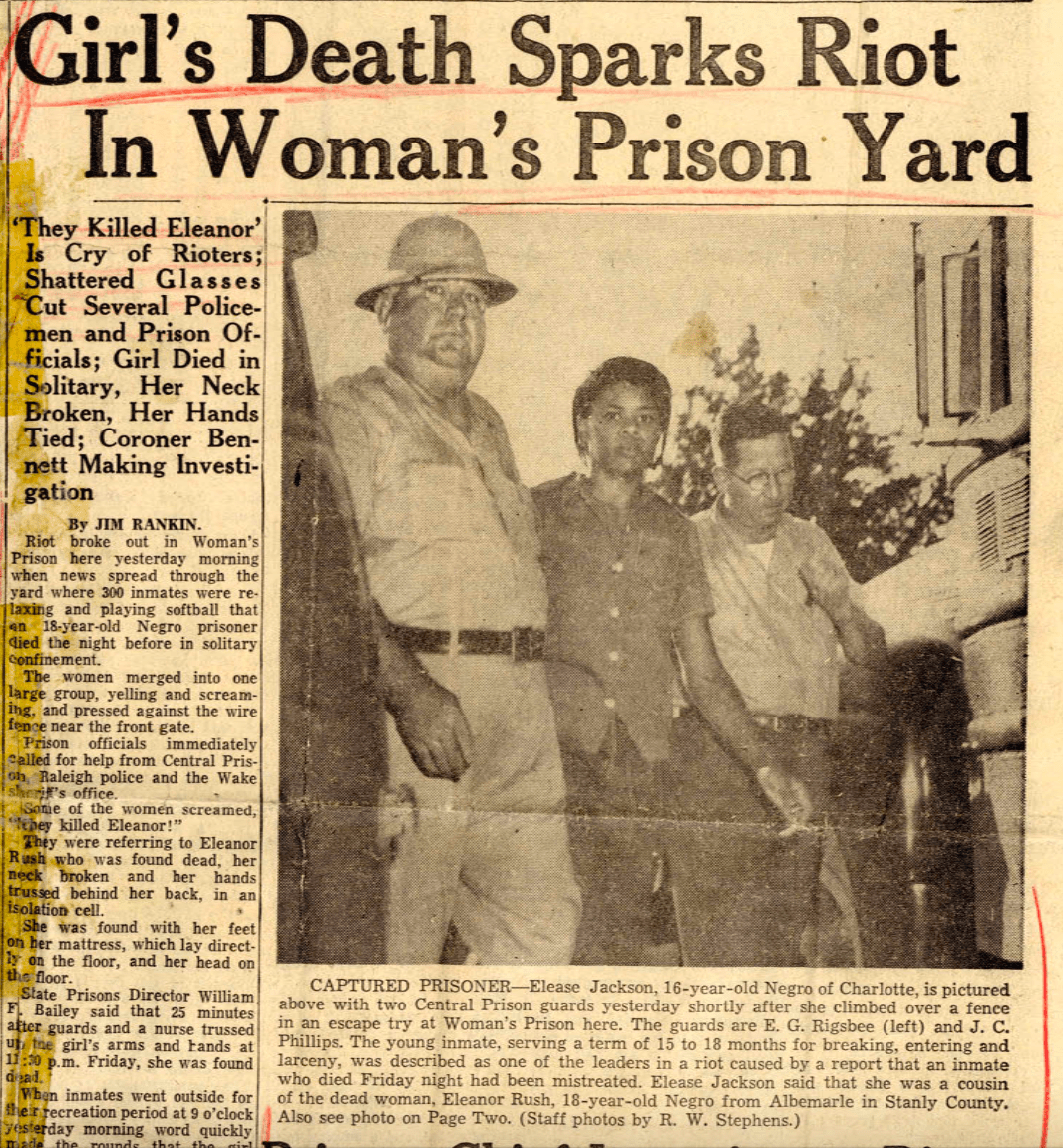 “The women merged into one large group, yelling and screaming and pressed against the wire fence near the front gate,” News & Observer reporter Jim Rankin wrote. Many of the women shouted, “They killed Eleanor.”