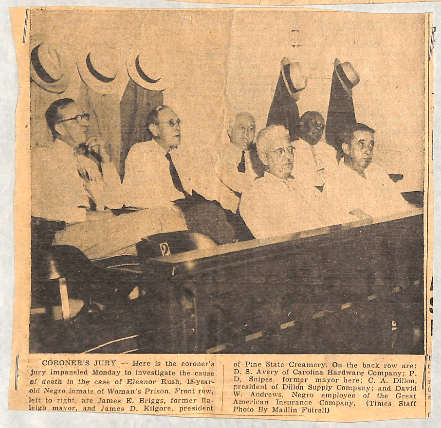 Less than a month later, the Wake County coroner ordered an investigation into the circumstances of Rush’s death. A jury of five white men, including two former Raleigh mayors and one Black man, was convened.