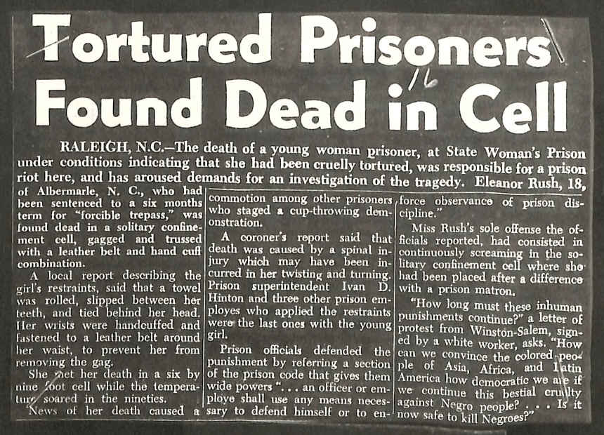 As a Black woman, Rush faced the brutal double whammy of racism and sexism in the Jim Crow era. Like other Southern states, the North Carolina prison system was set up to keep Black people separate, unequal, and oppressed, Chase said.