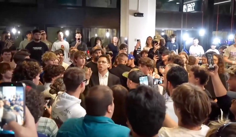 The young Millennial’s lack of cocktail knowledge, however, did not seem to deter his crowd of supporters, who roared and enthusiastically applauded Fishback’s pledges to divest state funds from Israel, ban Flock surveillance cameras, and ensure Floridians can utilize their right to free speech to call Israeli prime minister Benjamin Netanyahu a “war criminal” if they’d like.